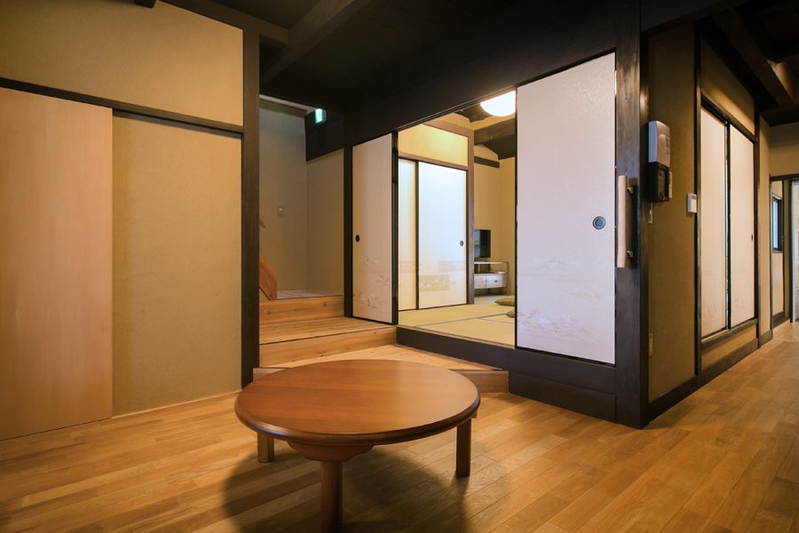 不頼庵は、京都の職人の技を随所に活かし、細部までこだわり抜いたリノベーションが施されています。定員は最大7名様まで。ご家族やご友人同士のグループ旅行にも最適です。