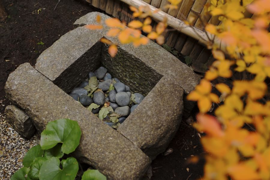 紅葉ある坪庭で季節の移ろいを感じる