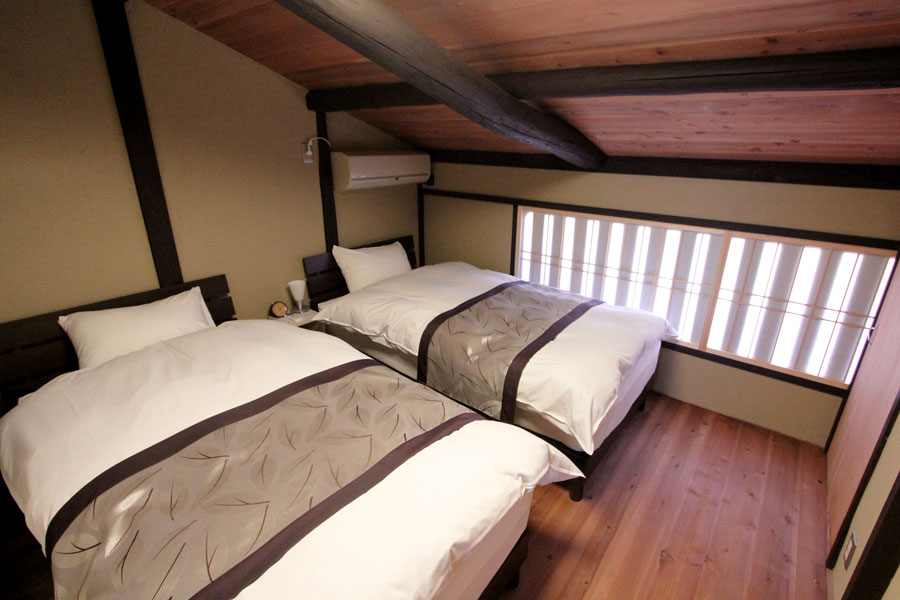 2階のベッドルームは情緒ある造り。100年以上の歴史ある梁が残されており、昔ながらの風情を感じていただけます。